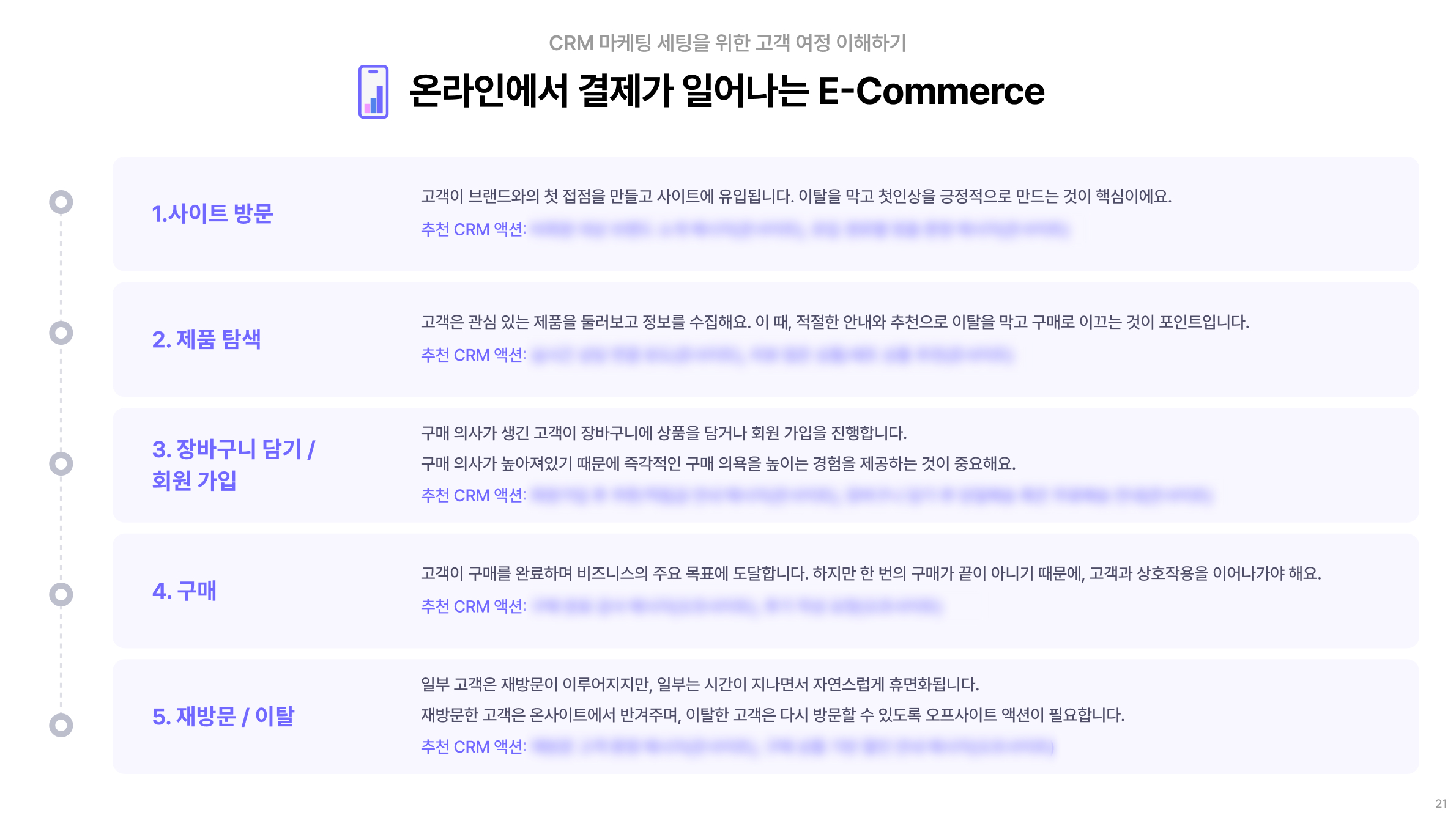 • 각 여정 별 추천 CRM 캠페인